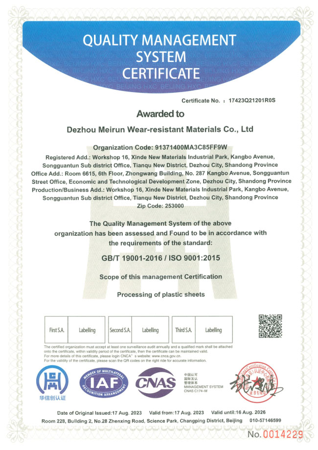 Dezhou Meirun Wear-resistant Materials Co., Ltd. is a high-tech manufacturer specializing in the development and precision customization of high-performance wear-resistant plastics and engineered components.